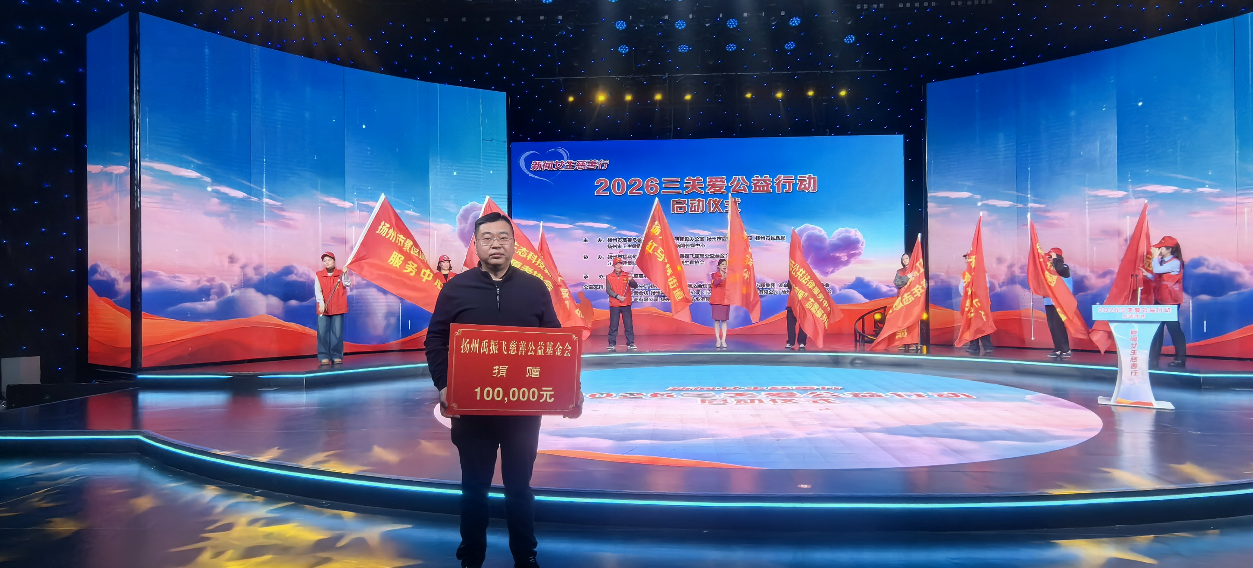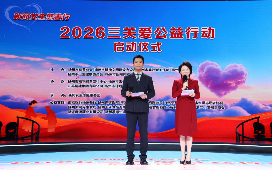 2025年12月19日上午,“新闻女生慈善行·2026三关爱公益行动”在扬州市新闻传媒中心一号演播大厅温暖启航。
