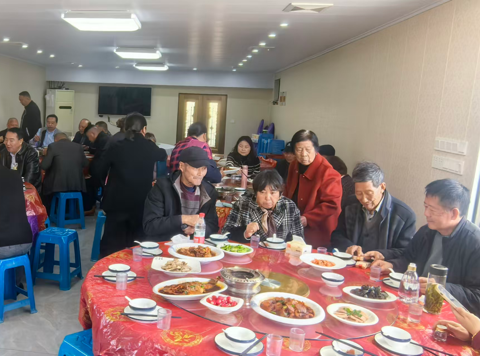 演出结束后,老人们被引导至用餐区,志愿者们小心翼翼地搀扶着行动不便的老人,为他们端上热气腾腾的饭菜。饭桌上,老人们边吃边聊,久违的热闹气氛让整个空间充满了温暖。